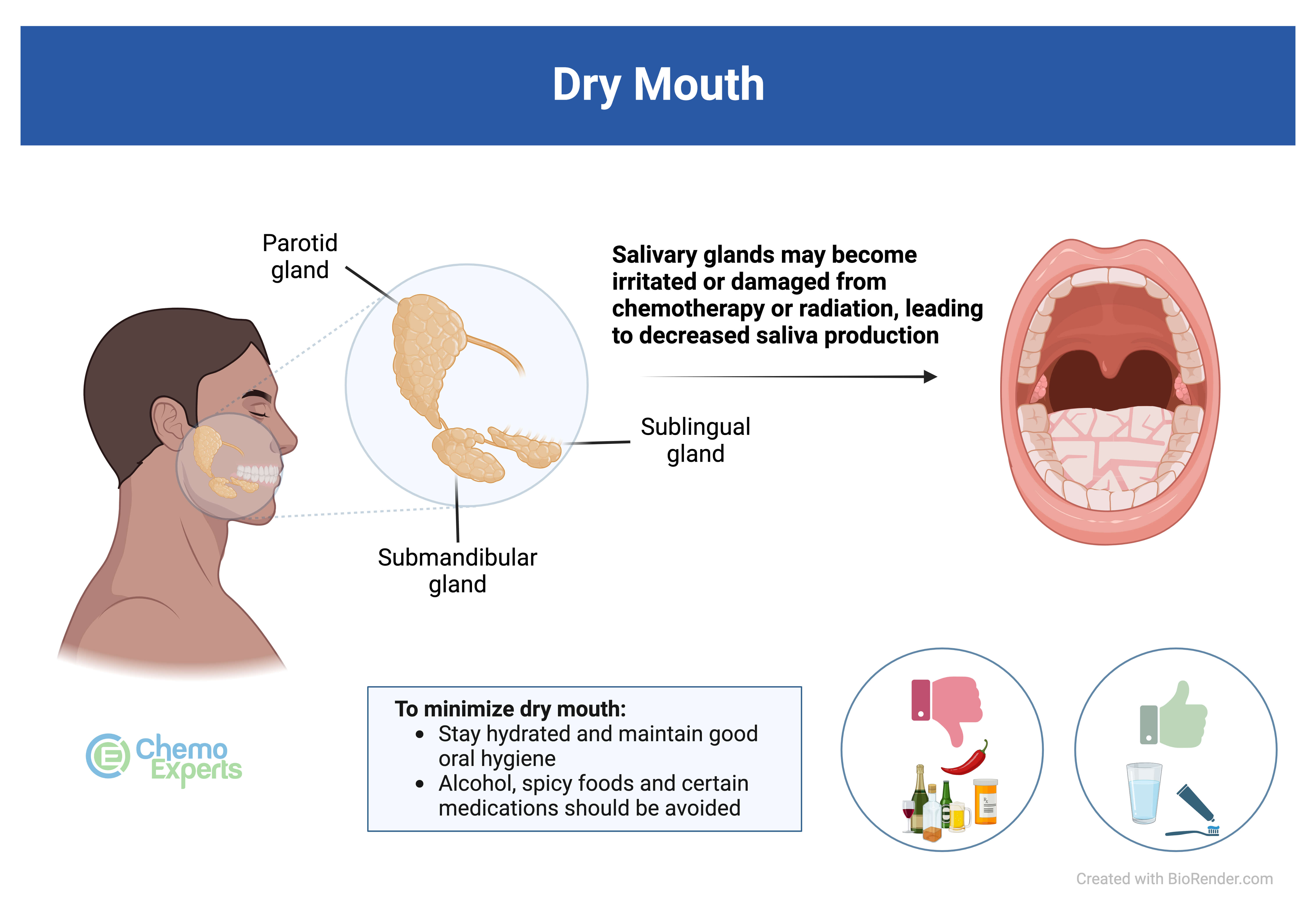 It is important to care for your mouth during cancer treatment to prevent dry mouth. The most important ways to prevent dry mouth include managing your diet, adjusting medications known to cause dry mouth, and maintaining good oral hygiene.