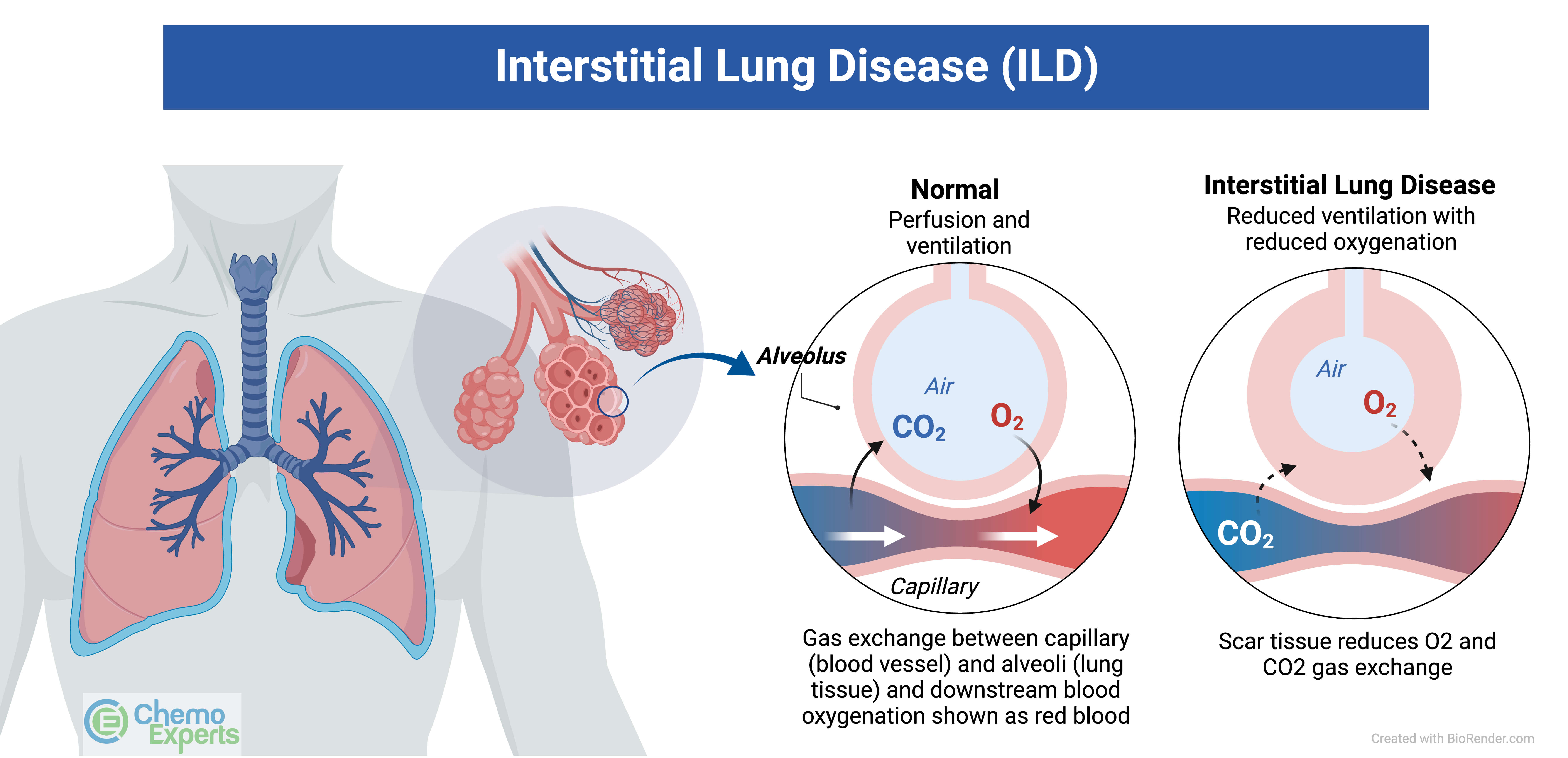 Interstitial lung disease (ILD) is a condition where the tissue that surrounds the air sacs in the lungs becomes inflamed and can lead to scarring. This can lead to poorer lung function and trouble with breathing.