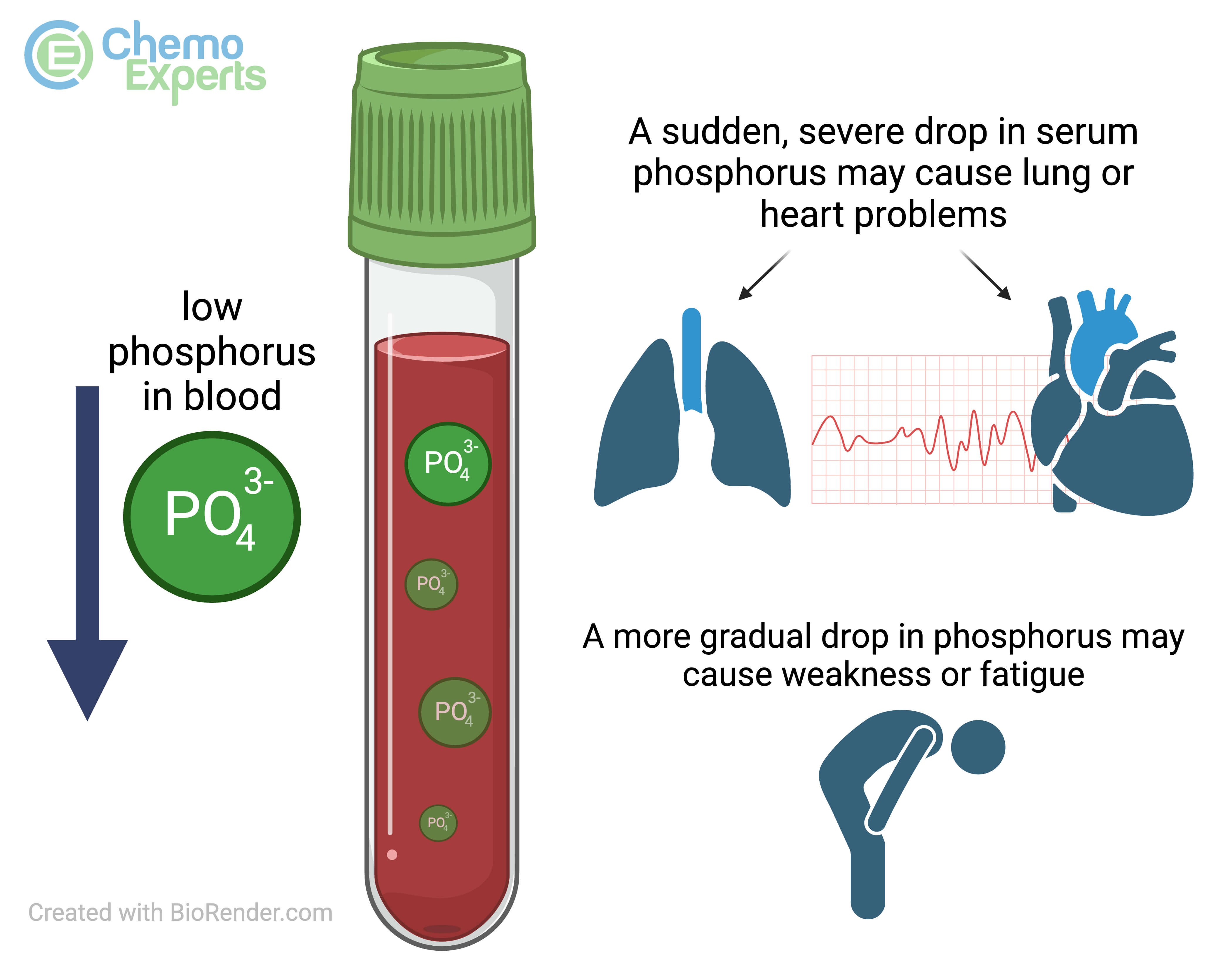 Phosphorus is an essential mineral that plays a critical role in many biological processes, including energy production, bone and teeth formation, and the body’s acid-base balance. If blood phosphorus levels get too low, this can lead to a wide range of symptoms, such as weakness, fatigue, muscle pain, and bone pain. In severe cases, it can even lead to respiratory (lung) and heart failure.
